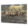 This SOLO® glass tile features artwork by Carolyn Mock that depicts a big elk standing in a field. Carolyn Mock’s artwork has been specially reproduced for our SOLO® glass tiles. A solo glass tile depicting elk and deer is a great addition to any kitchen backsplash, bathroom or living area wall. Our elk or deer solo glass tiles are designed to be a beautiful centerpiece for any room in your home.